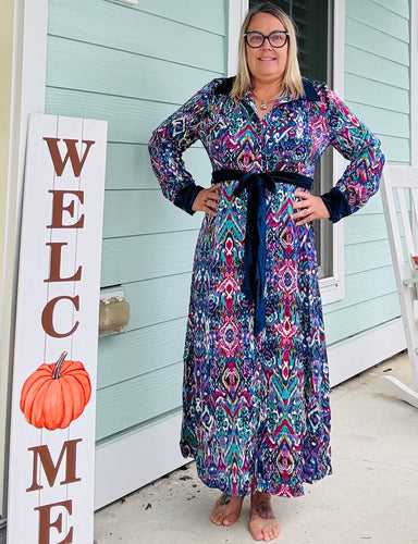 Aztec Printed Collared Button Down Midi Dress with Contrast Detail